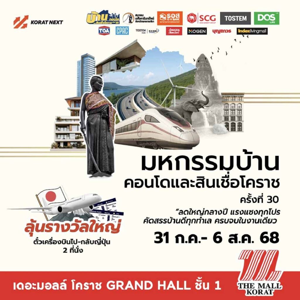 วันที่ 31 กรกฎาคม – 6 สิงหาคม 2568 ณ GRAND HALL ชั้น 1 เดอะมอลล์ โคราช มหกรรมบ้าน คอนโด และสินเชื่อ โคราช ครั้งที่ 30 กลับมาแล้ว! งานเดียวที่รวม บ้านทุกทำเลทั่วโคราช มาไว้ครบ! โครงการบ้าน คอนโด ทาวน์โฮม พร้อมจองที่ปรึกษาจาก ธนาคารอาคารสงเคราะห์ (ธอส.) ให้คำแนะนำเรื่องกู้พร้อมสินเชื่อสุดพิเศษบูธผู้จัดจำหน่ายวัสดุก่อสร้าง และอุปกรณ์ตกแต่งบ้านครบวงจรบริษัทรับสร้างบ้าน สำหรับคนอยากปลูกบ้านในฝัน ไฮไลต์ในงาน จองบ้านในงานรับเลยบัตรกำนัลเดอะมอลล์ เมื่อผ่านพรีแอพพรูพ ลุ้นรางวัลใหญ่ ตั๋วเครื่องบินไป–กลับญี่ปุ่น 2 ที่นั่ง (จับรางวัลวันสุดท้าย) *สอบถามเงื่อนไขเพิ่มเติม ภายในงาน